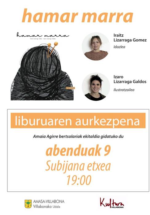 Izaro eta Iraitz Lizarraga zizurkildarrek argitaratu berri duten 'Hamar marra' liburuaren aurkezpena egingo dute gaur, 19:00etan hasita, Subijana etxean. Memoria historikoaren inguruan hausnartzen du liburuak.