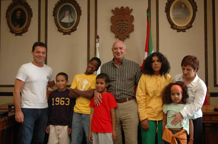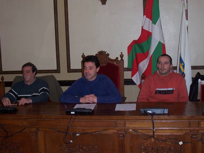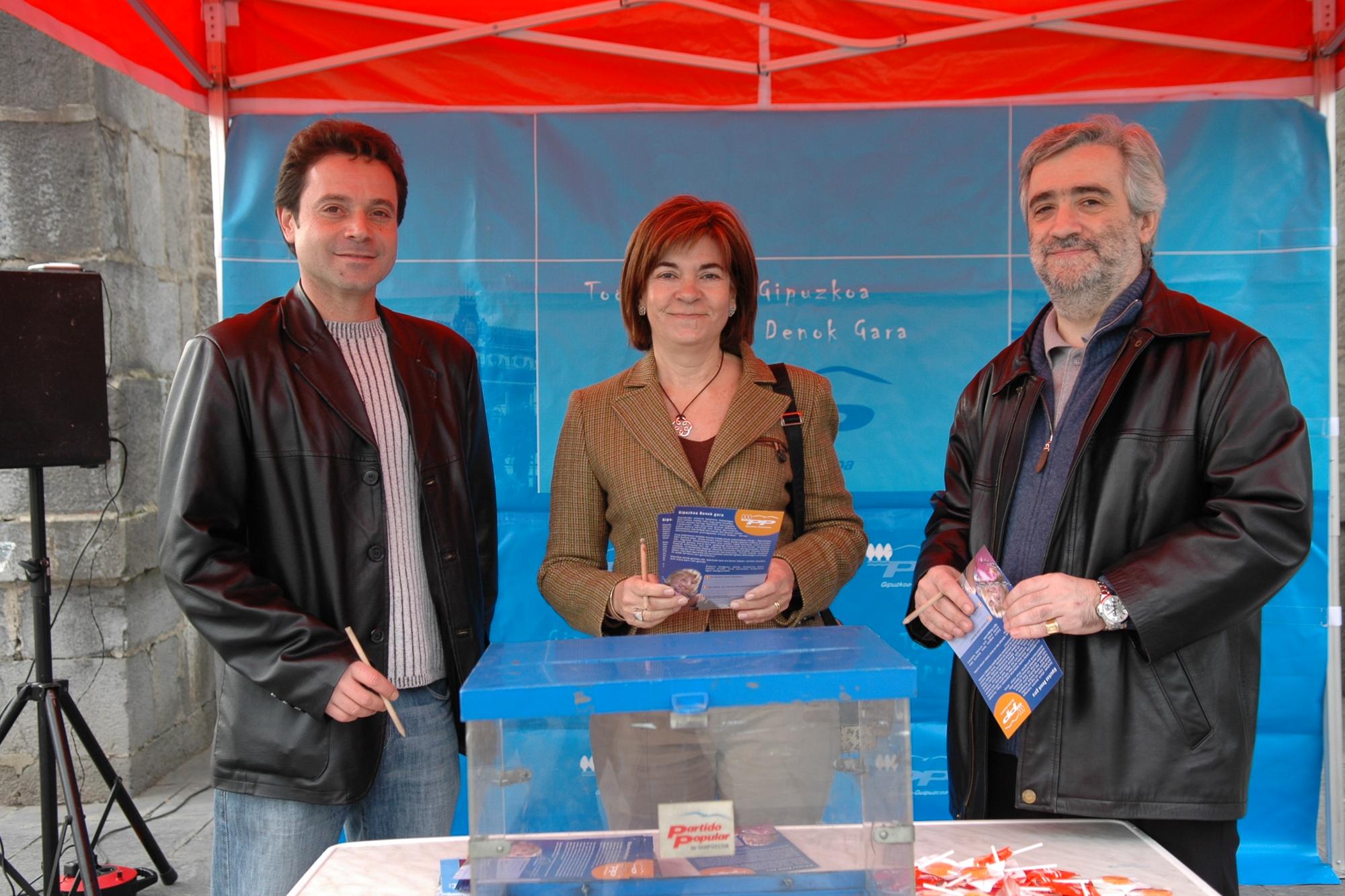 Torrado (PP) eta Perez Gabarain alkatea (PSE-EE), Andoaingo udaletxean, Saharako haurren harrera-ekitaldian. Haiekin batera, Sanz udal teknikaria.