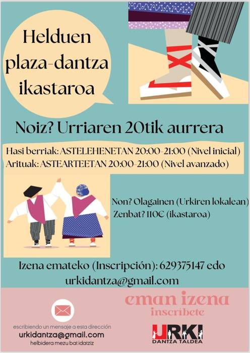 Urriaren 20tik aurrera martxan jarriko da euskal dantzen ikastaroa, Urki dantza taldearen eskutik. Bi taldetan banatuko dituzte parte-hartzaileak: hasi berriak (astelehenetan, 20:00-21:00) eta arituak (astearteetan, 20:00-21:00).