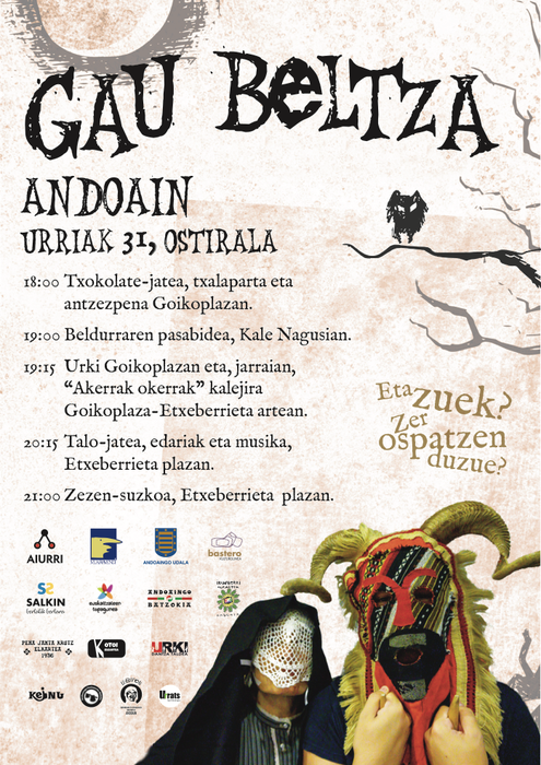 Eskertza adierazi nahi diegu jaiaren antolaketan murgildu diren elkarte eta boluntario guztiei, eta andoaindarrei Gau Beltzan murgiltzeko gonbita luzatu nahi diegu”.
