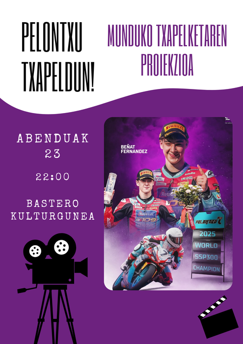 Beñat Fernandez andoaindarrak munduko txapelketa lortu zuen urrian Supersport 300 txapelketan. Omenaldi beroa egin zieten herrikideek, handik egun gutxira. Balentria horren ikus-entzunezkoa asteartean ikusgai izango da Basteron, gaueko 22:00tan hasita.