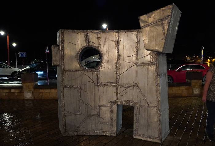 Olazabalen aldeko erakusketarekin batera ipinitako eskultura