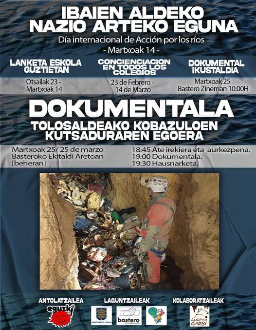 Kanpainari amaiera emateko, martxoaren 25ean, Tolosaldeko kobazuloen egoera hizpide duen dokumentala proiektatuko dute Basteroko ekitaldi aretoan. Horrela, 18:45ean, ate irekiera eta aurkezpena egingo dute; 19:00etan dokumentala emango dute, eta 19:30ean, solasaldia izango da.