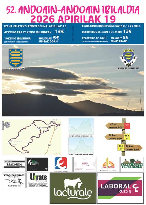 Ibilaldi familiarra Andoain eta Adunako lur sailetan barrena luzatuko da, eta Belkoaingo gainetik (491 m.) igaroko da. 10 kilometrokoa izango da eta 400 metroko desnibelarekin.