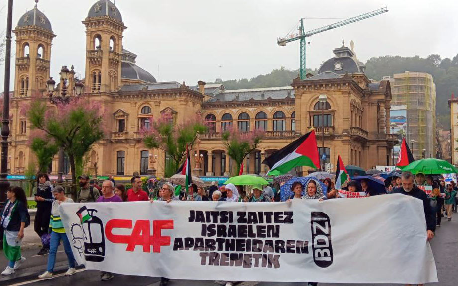Gizarte eragileek gogoratu dute 2025eko irailean, Israelen asentamenduetako jarduerei lotutako enpresen Nazio Batuen datu-basean sartu zela CAF.