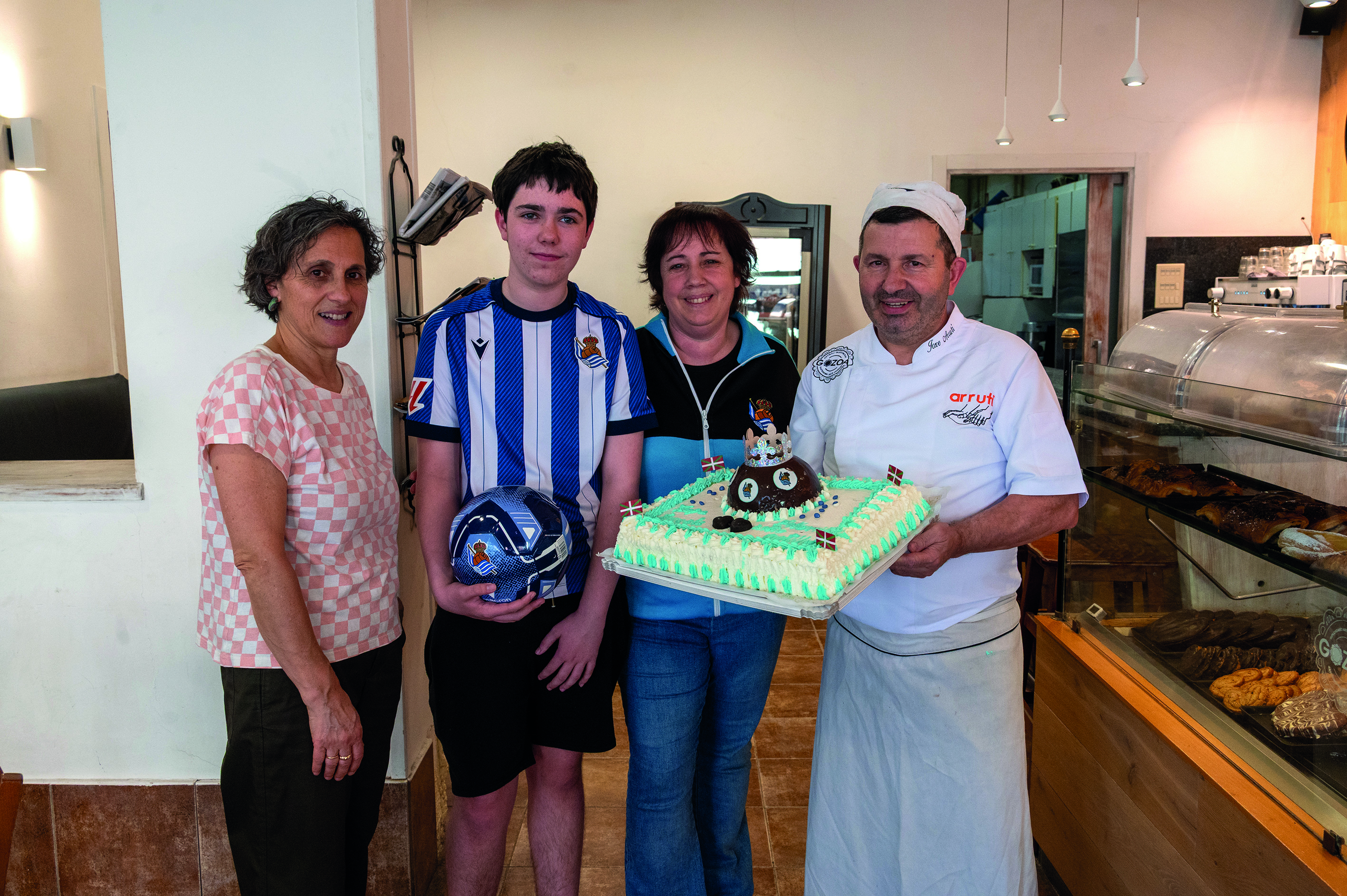 Astelehen arratsaldean hurbildu zen Zumea kaleko gozotegira eta bertan Bakartxok eta semeak Ormendiko eta Arrutiko dendarien eskutik jaso dituzten bi sariak: Tarta txuri-urdiña eta Errealaren baloia. Zorionak!
