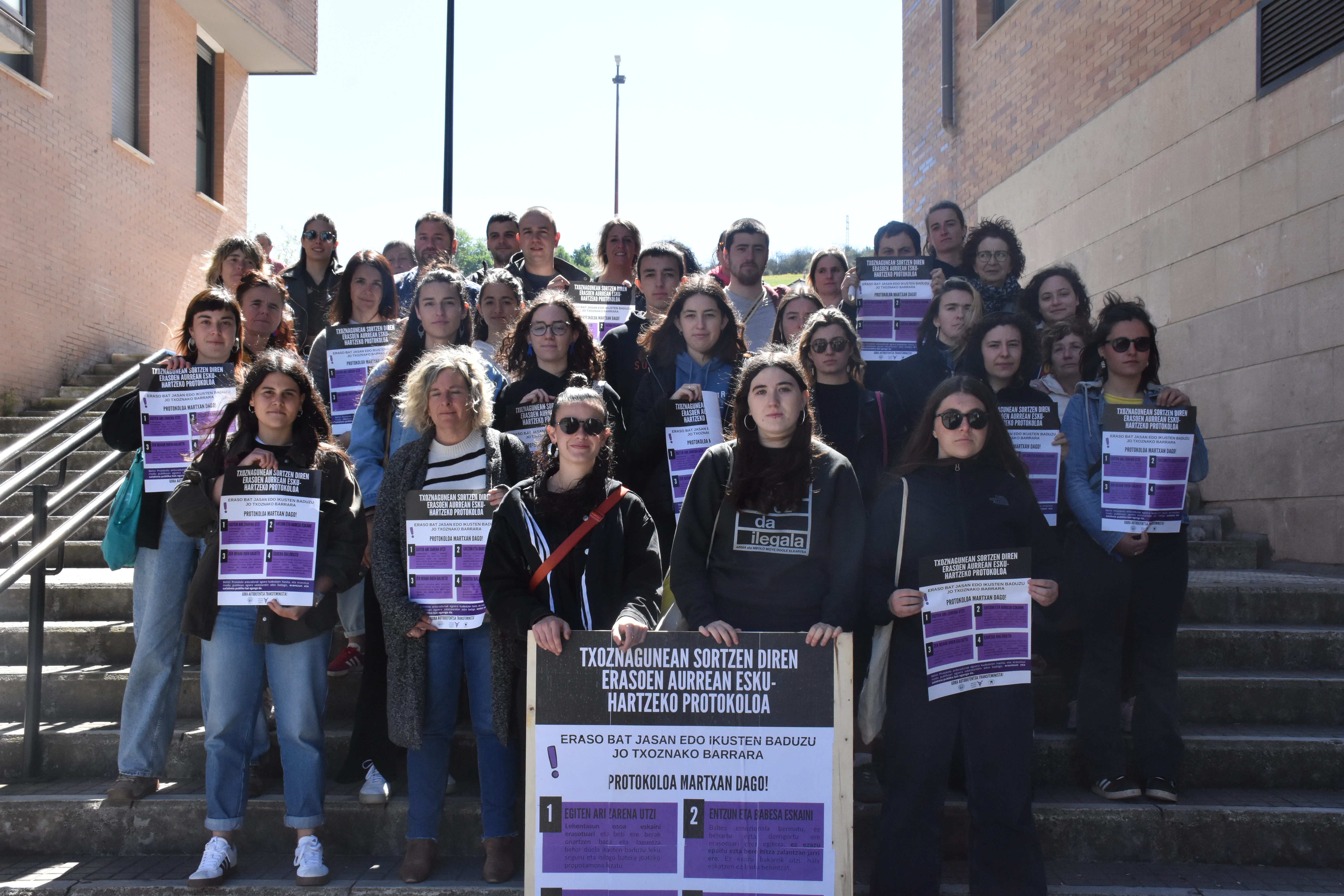 Beraz, jaietan gozatzen egongo zareten gazte eta ez hain gazte guztiei erasoen aurrean guregana hurbiltzera gonbidatu nahi zaituztegu, erabili protokoloa, hurbildu eta egin galderak, beldurrik gabe. Ez da gutxiegi gertatu zaizuna eta ez da gehiegizkoa era publikoan edota norbaiti salatu nahi izatea; baboseoa, ukituak, iruzkinak eta begiradak ere erasoak dira eta bat erasotzen badute, gu denak izango gara alboan.