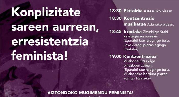 Emakumeen aurkako indarkeria ezabatzeko Nazioarteko Eguna da gaurkoa eta mugimendu feministak ekitaldi-sorta iragarri du Beterri-Aiztondon.