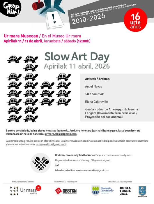 Angel Navas, SK Efimeroak eta Elena Cajaraville artisten parte hartzearekin ekingo diote Slow Art Day izenburua jarri dioten ekitaldiari, eta Arreseygor eta Langararen Qualia dokumentala proiektatuko dute ondoren.