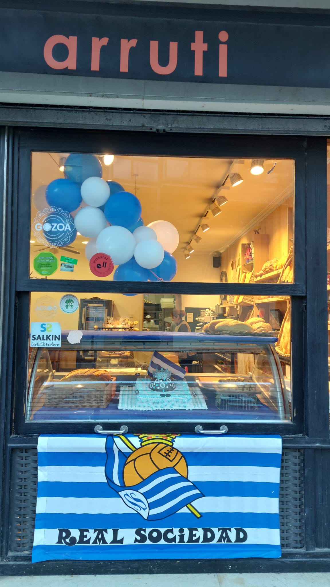 • Arruti gozotegiak egindako tarta txuri-urdiña.