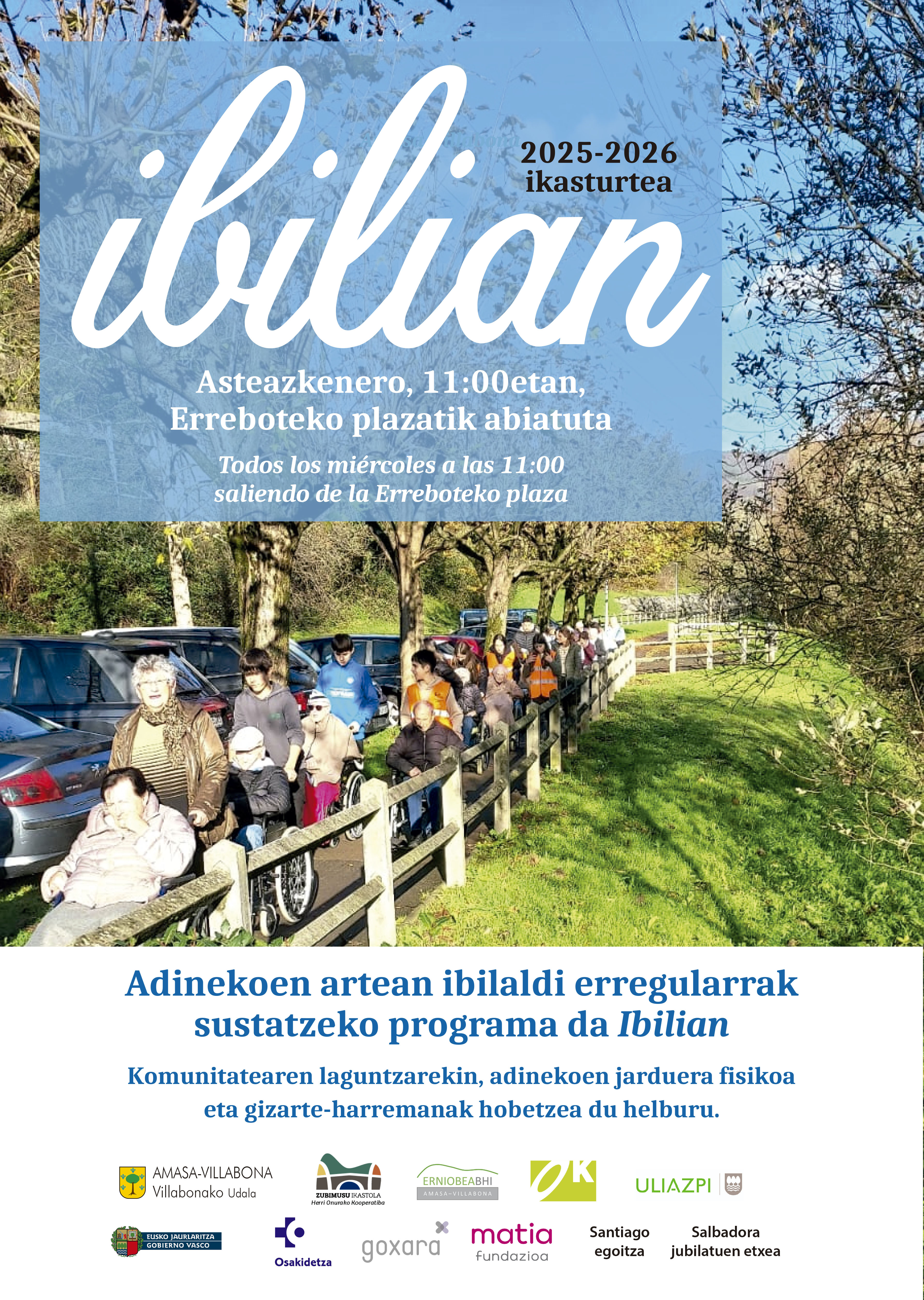 2025-2026 ikasturteko lehenengo ibilaldia asteazkenean, urriaren 1ean egingo da, 11:00etan, Villabonako Erreboteko plazatik abiatuta. Herrrian zehar egindako ibilaldiaren ondoren, parte-hartzaileei salda beroa eskainiko zaie. Ibilaldiak asteazkenero egingo dira, ordu berean, ordubete inguru.