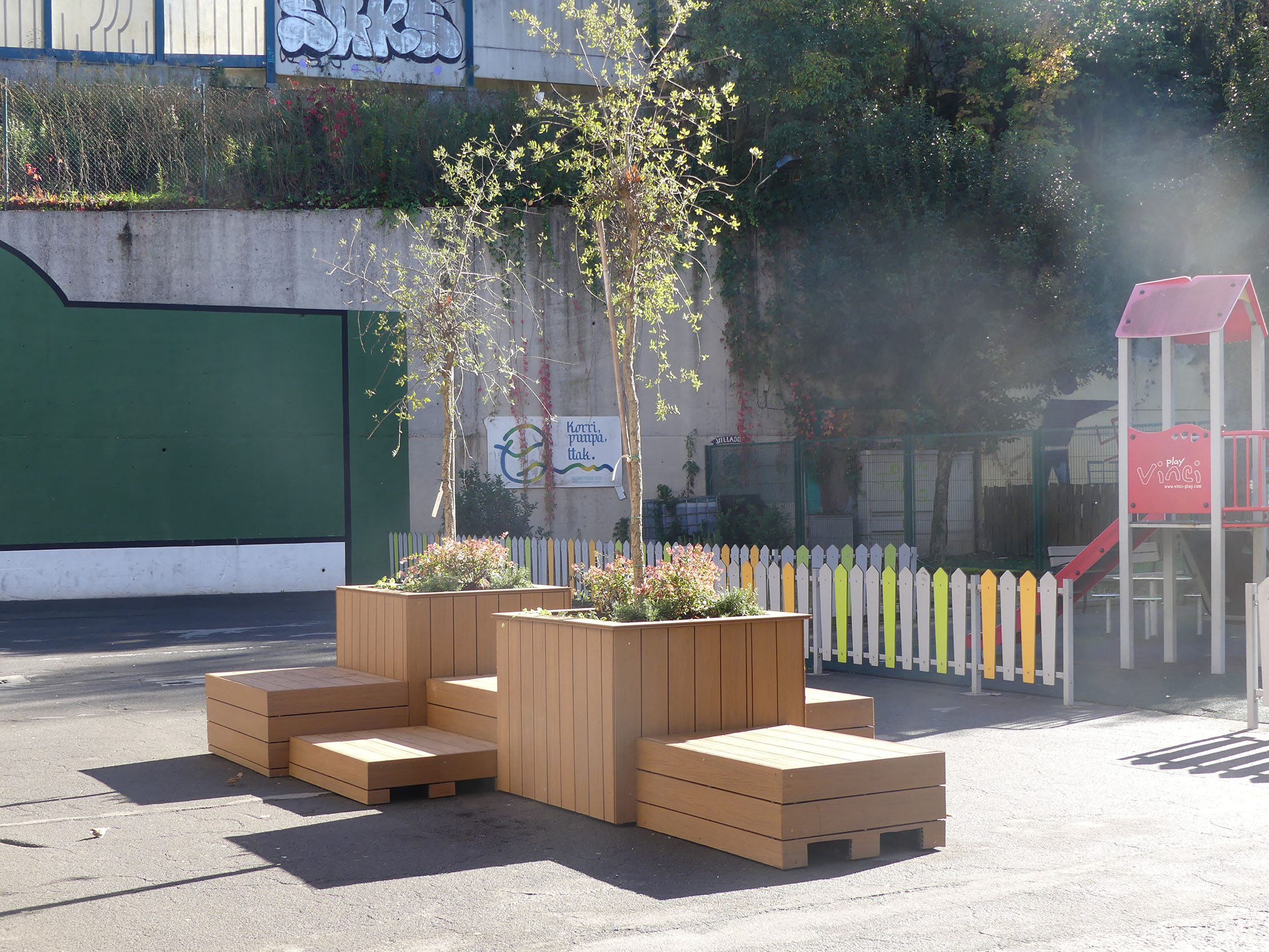 Hemendik aurrera, beraz, elementu naturalekin osatutako (egurra, lurra eta bi zuhaitz) eta haurren arteko harreman inklusiboak sustatzeko diseinatutako jolas-gune berriak erabilgarri daude.