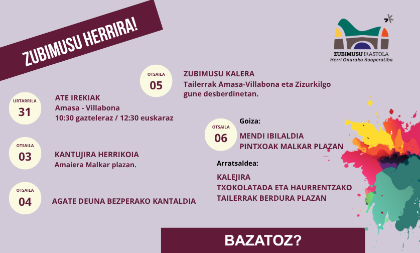 Bai Amasa-Villabona eta baita Zizurkilen ere, ikasleekin eta familiekin, elkarrekin gozatzeko hainbat eta hainbat ekimen antolatu ditugu, beraz anima zaitezte jarduera horietan parte-hartzera!