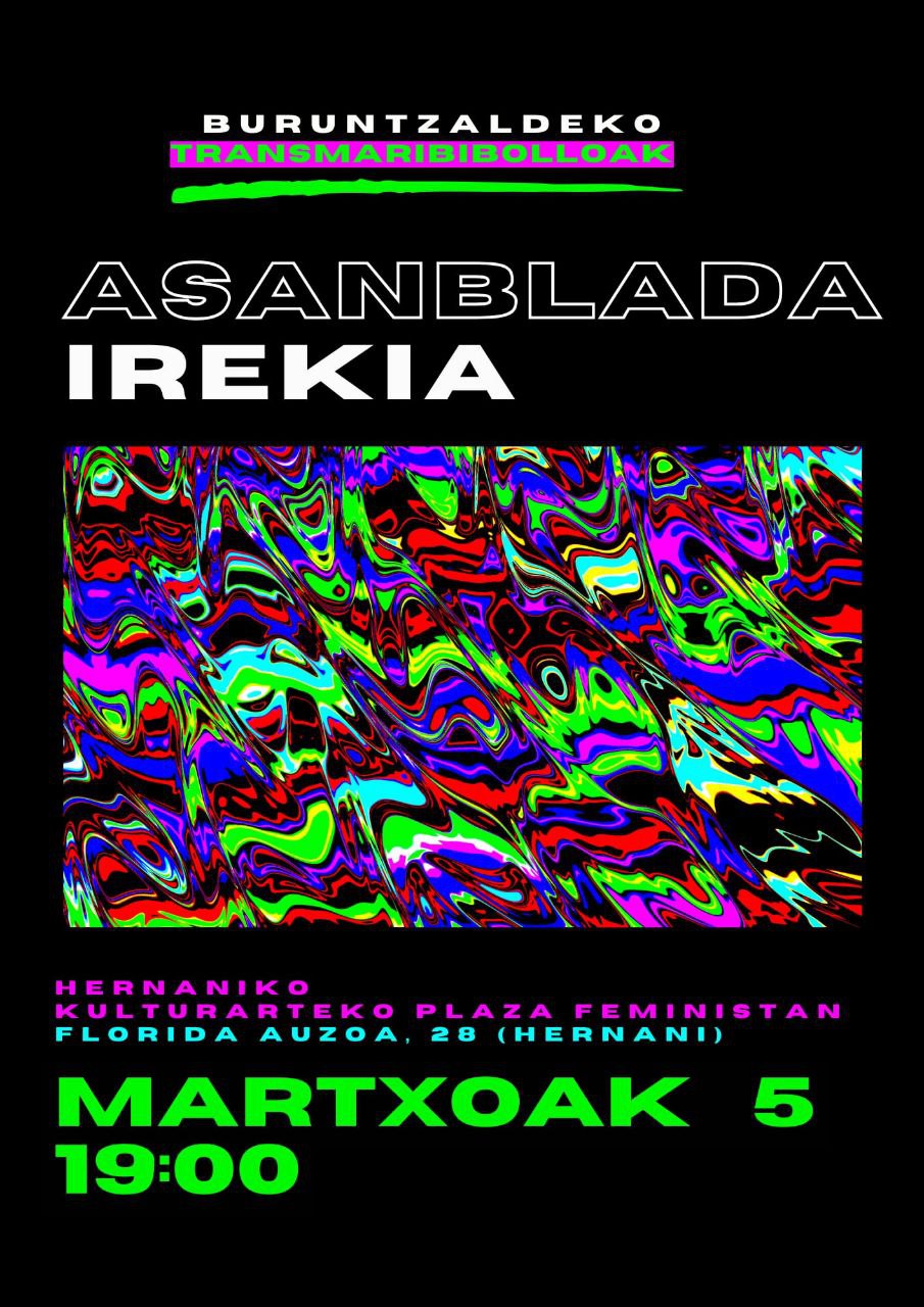 Ostegun honetan, martxoak 5, arratsaldeko 19:00etan hasita, Buruntzaldeako Transmaribibolloek asanblada irekia egingo dugu Hernaniko Kulturarteko Plaza Feministan.