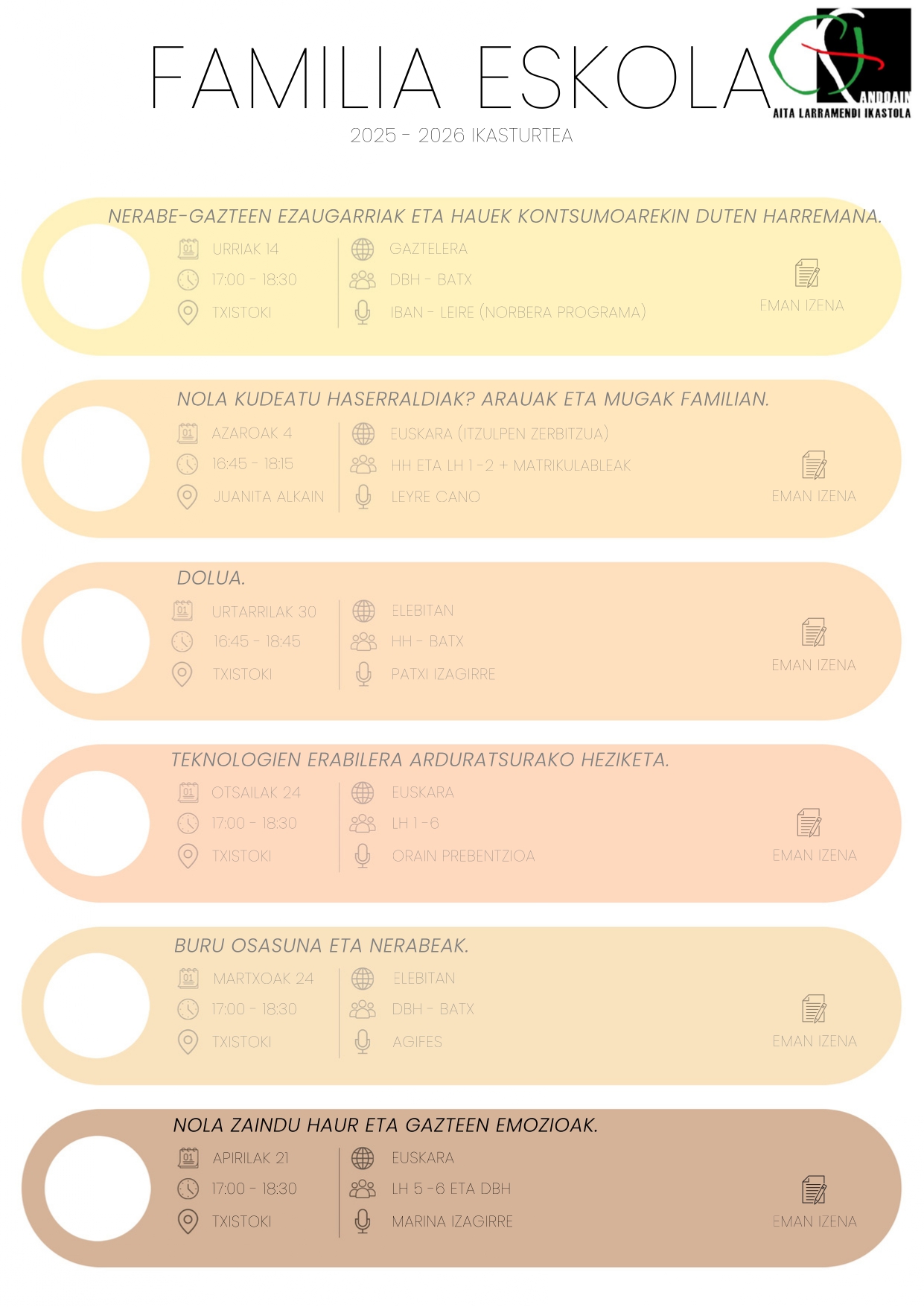 Familia eskolako hitzaldia Aita Larramendi Ikastolan.