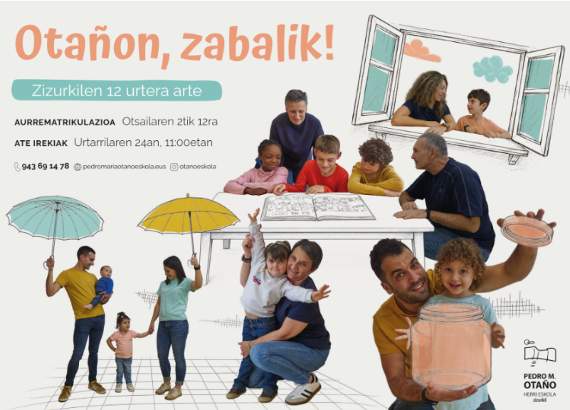 2026-2027 ikasturteko aurrematrikulazio epearen atarian, Otañok eskolako ateak irekiko dizkie familiei. Bertan, eskolako proiektua ezagutzeko aukera izango dute eta barne espazioak bisitatuko dituzte 11.00etatik aurrera. Amaitzeko, elkar ezagutzeko kafe tertulia goxoa eskainiko zaie. OTAÑON, ZABALIK!