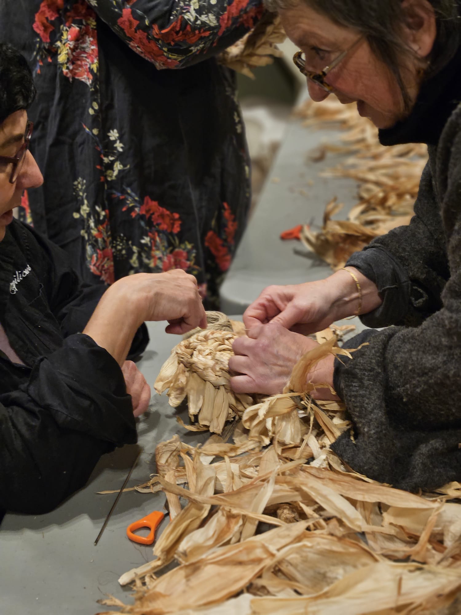 Martxoak 8aren harira, ekitaldi sorta zabala prestatu dute Larraulen. Antzinako euskal ohitura bat berreskuratuz, arto hostoak lantzen ikasteko ikastaroa egin dute goizean.