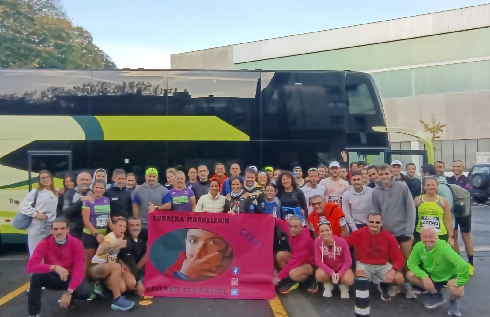 Urnietako hainbat lasterkari Aurrera Markelekin abiatu ziren atzo, Behobia-Donostia lasterketaren irteerara. Hiztordu bikoitza zuten irteteko, HK10 hotelean eta kiroldegiaren aurrealdean.