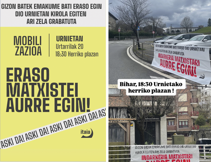 Eskualdeko Itaia mugimenduak salatu duenez, gertaera kiroldegian izan zen gizonezko bat emakumezkoaren irudiak hartzen ari zenean. Indarkeria matxista borrokatzea du xede Itaiak, eta biharko elkarretaratzea deitu du.