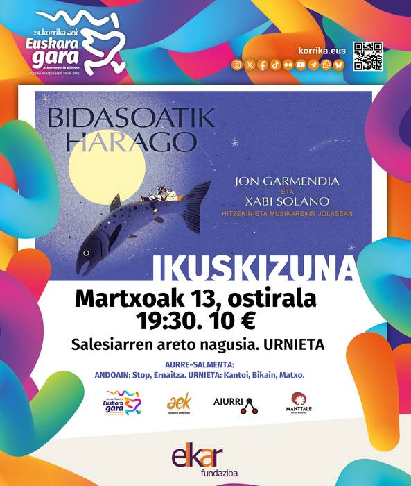 Jon Garmendia Txuria idazleak eta Xabi Solano musikariak sortu dute Bidasoatik Harago ikuskizuna, antzoki eta espazio txikietarako proposamen intimoa. Ipuinak, poemak eta idazki laburrak, gitarraz, trikitiaz eta ahotsez lagunduta.