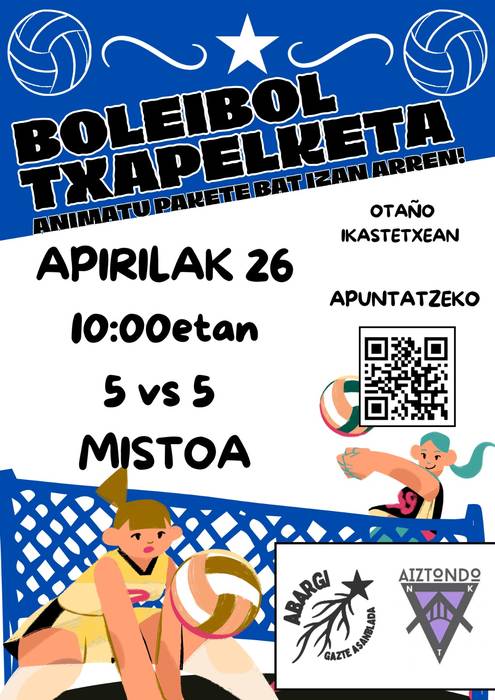 Aiztondoko gazte asanbladak eta Aiztondo Neskide taldeak boilebol txapelketa mistoa antolatu dute igande honetarako. 10:00etan hasiko dira partidak, Otaño ikastetxeko jolaslekuan. Parte hartzeko deia zabaldu dute antolatzaileek.